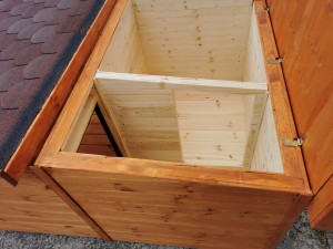 Vnitřní výšku boudy a terasy jsme zvýšili o 10 cm oproti základním modelům, takže se zde pohodlně uvelebí i větší psi. Plocha terasy je stejná jako plocha boudy – což zajišťuje dostatek místa.